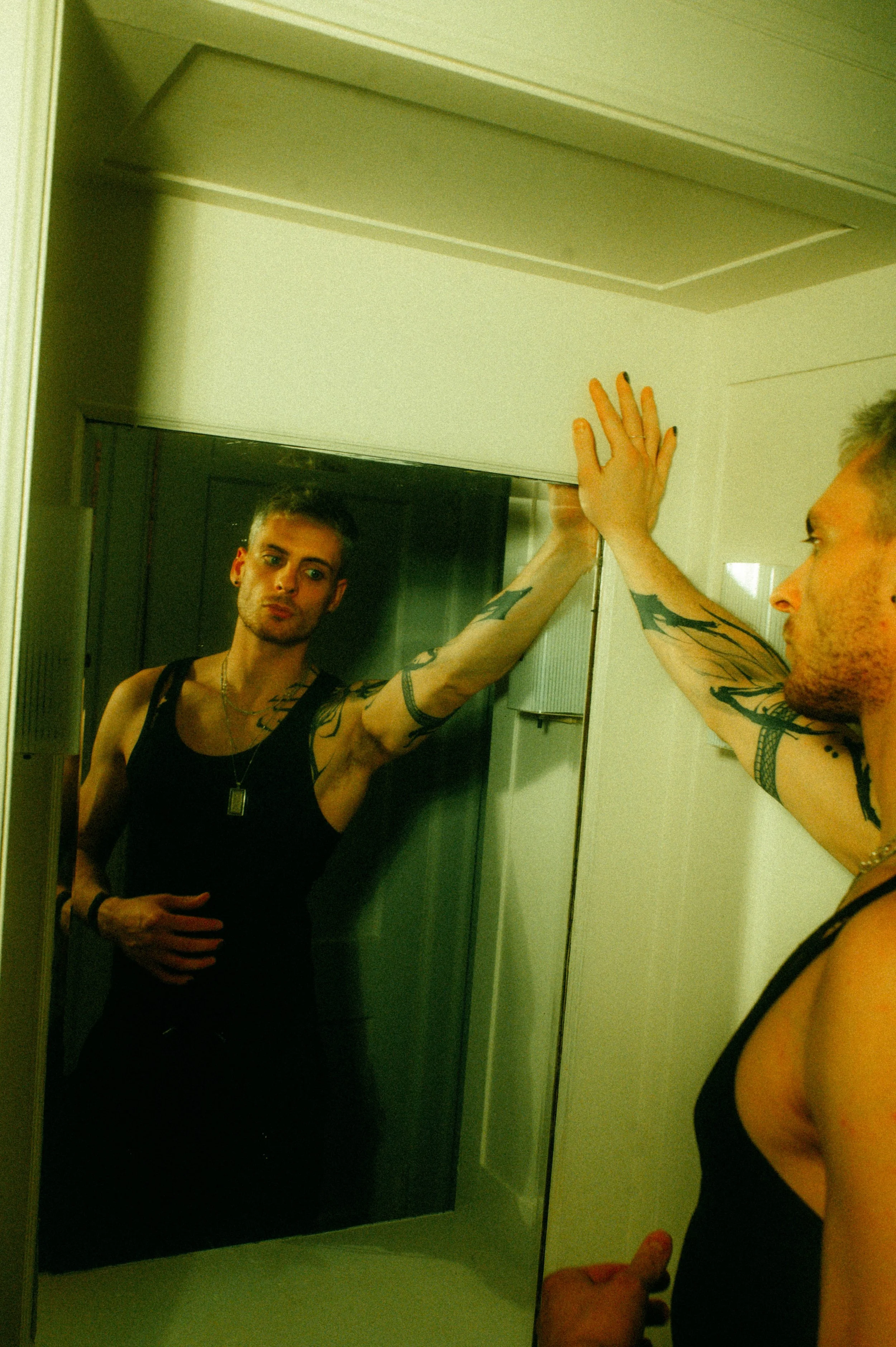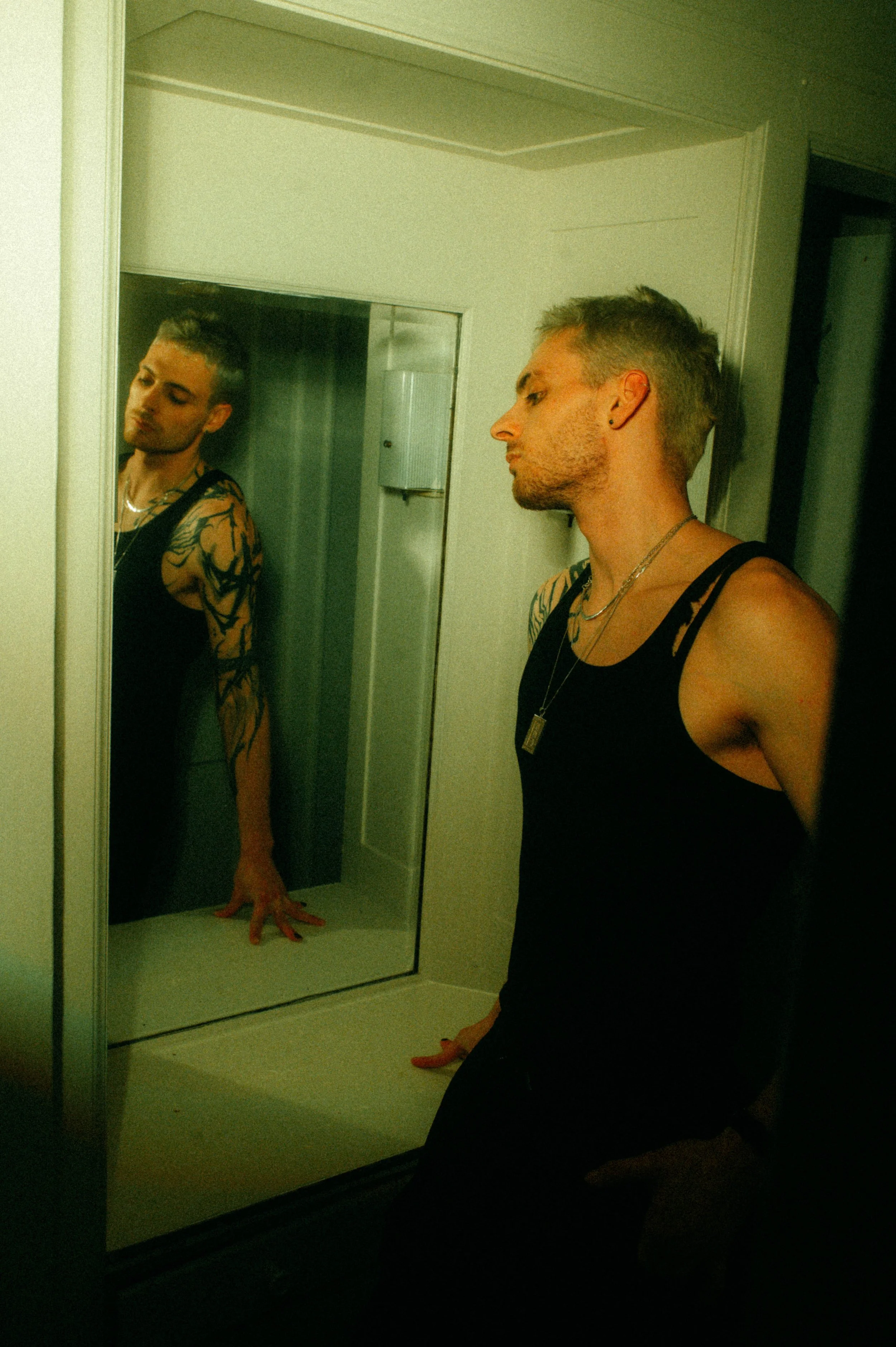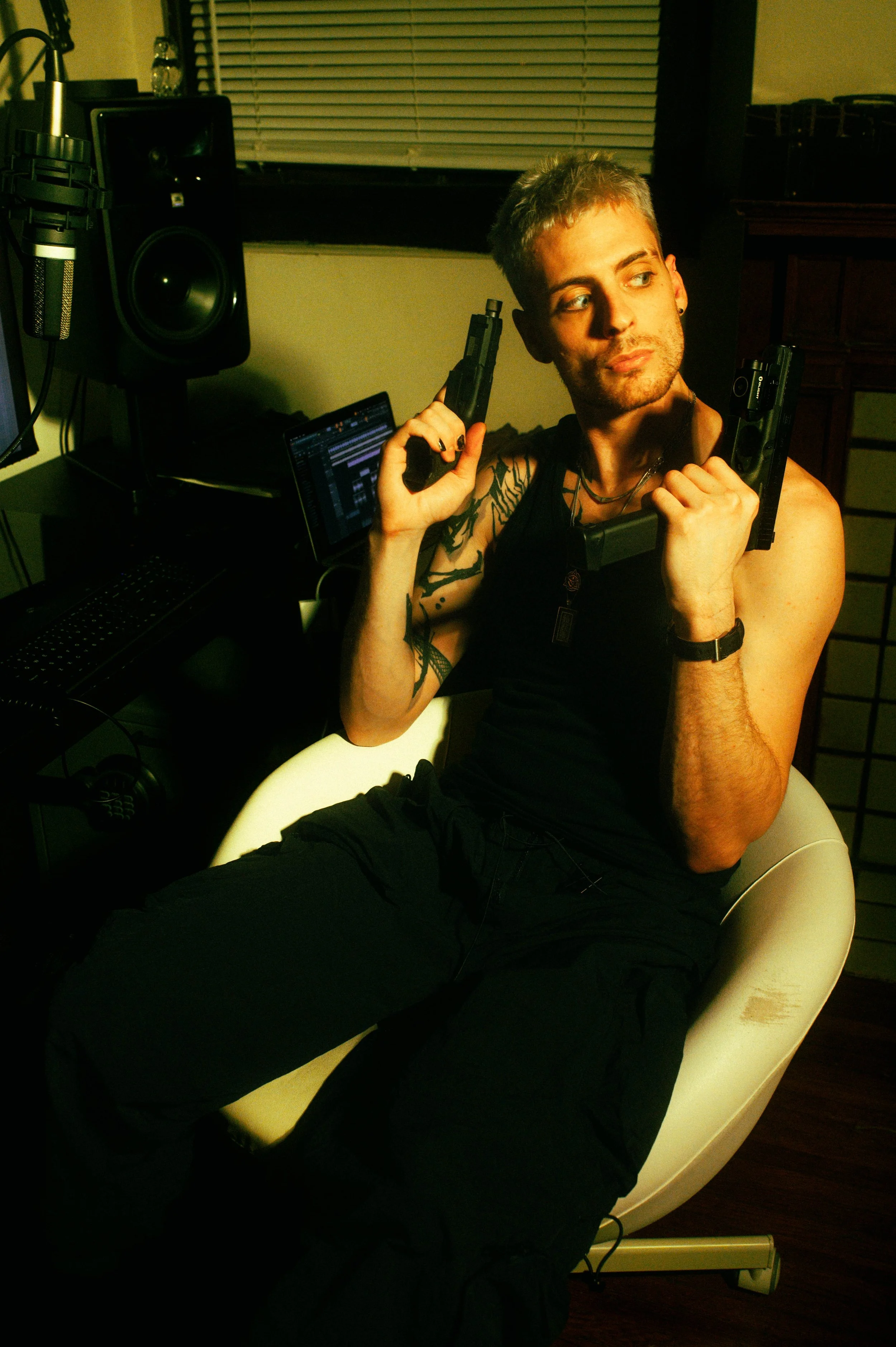 The barracks become sanctuary, discipline stitched into shadow. Firearms and microphones blur into the same language of survival. Reflection fractures the self, splitting warrior from artist, devotion from defiance. Between order and chaos, the body endures—an outpost of dark energy, waiting for the next signal.