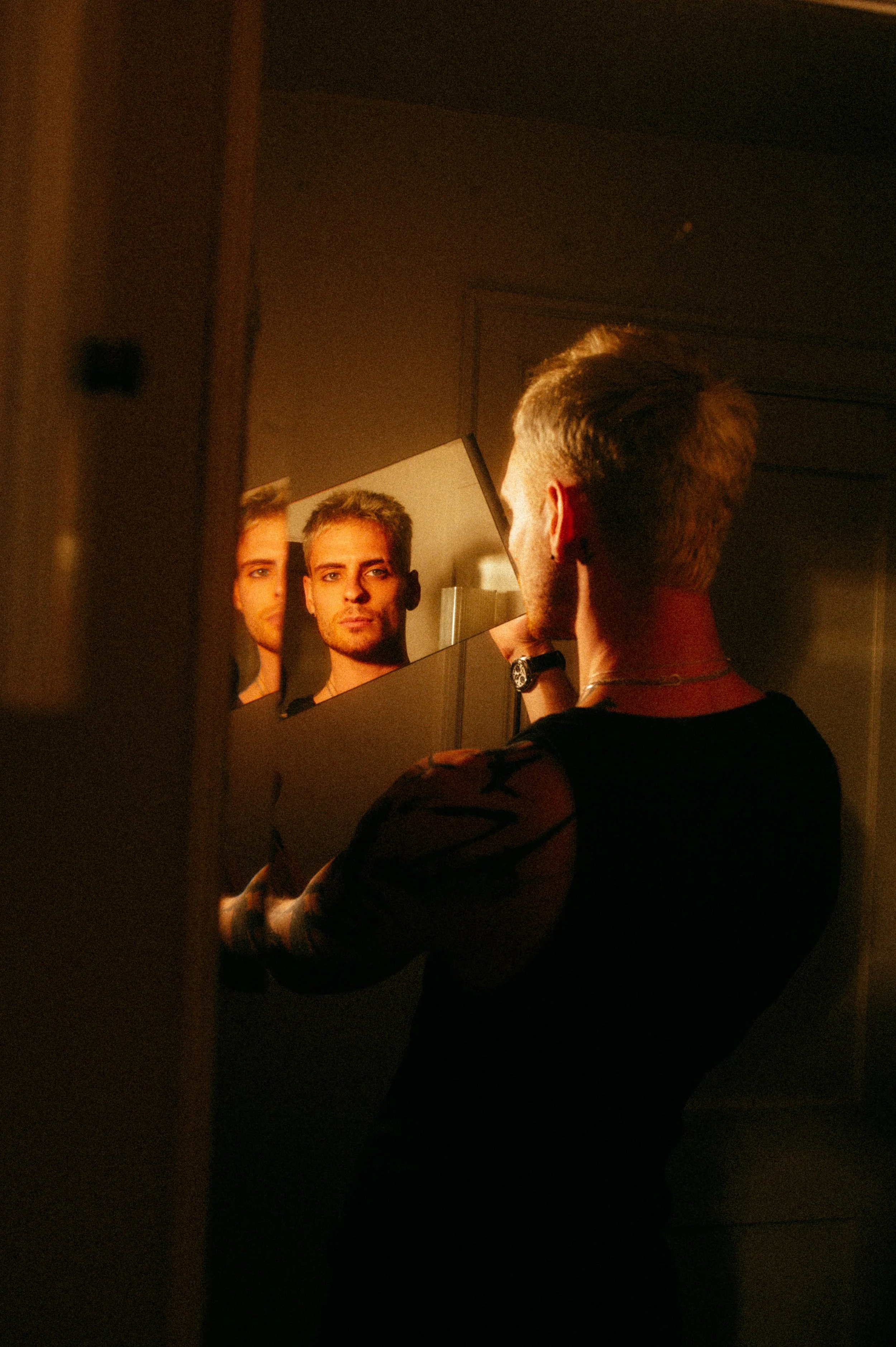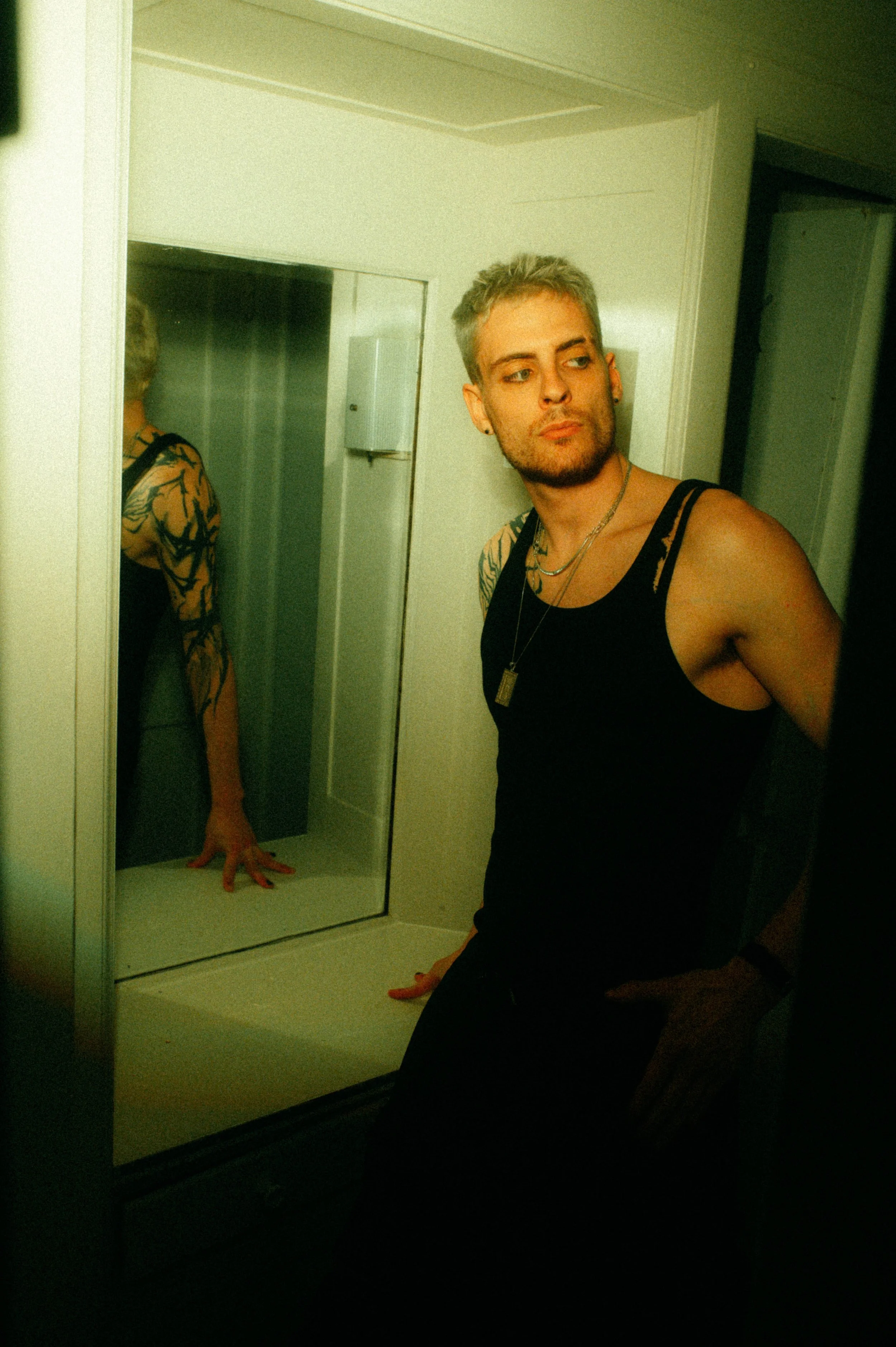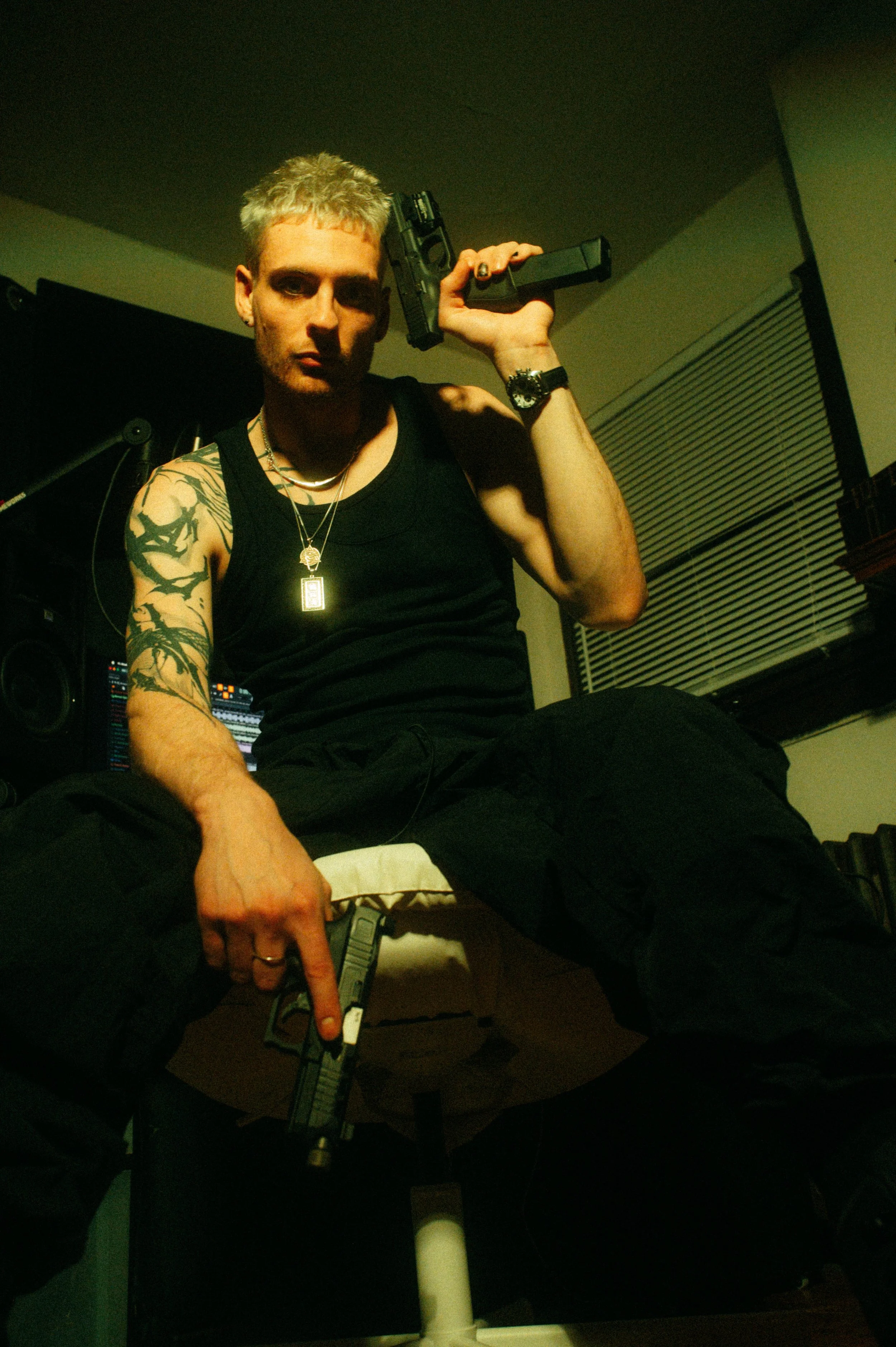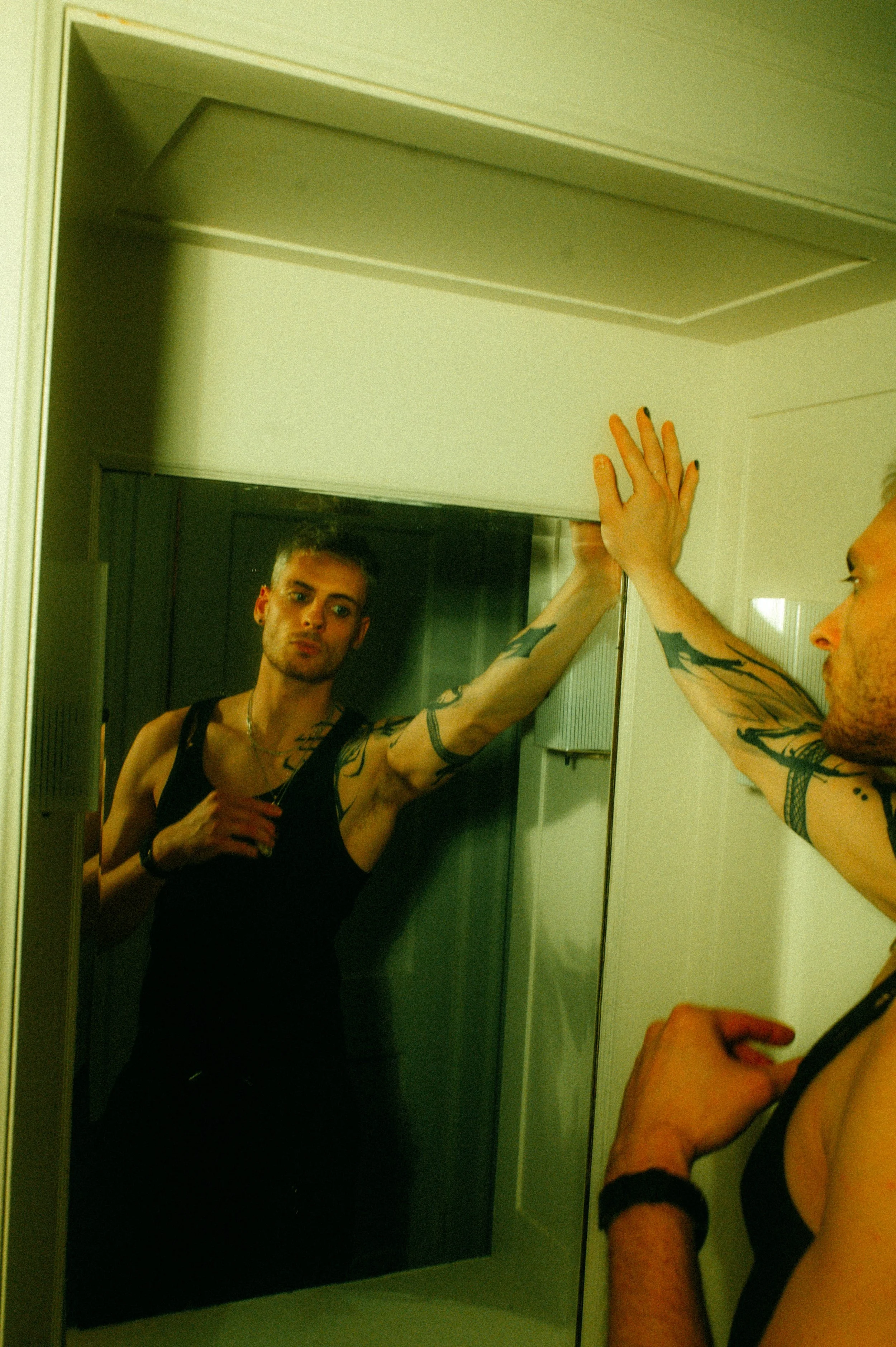 The barracks become sanctuary, discipline stitched into shadow. Firearms and microphones blur into the same language of survival. Reflection fractures the self, splitting warrior from artist, devotion from defiance. Between order and chaos, the body endures—an outpost of dark energy, waiting for the next signal.